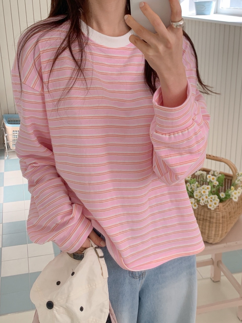 [봄신상/산뜻컬러/스트라이프/오버핏/캐주얼/데일리] 케프리 단가라 맨투맨 4color