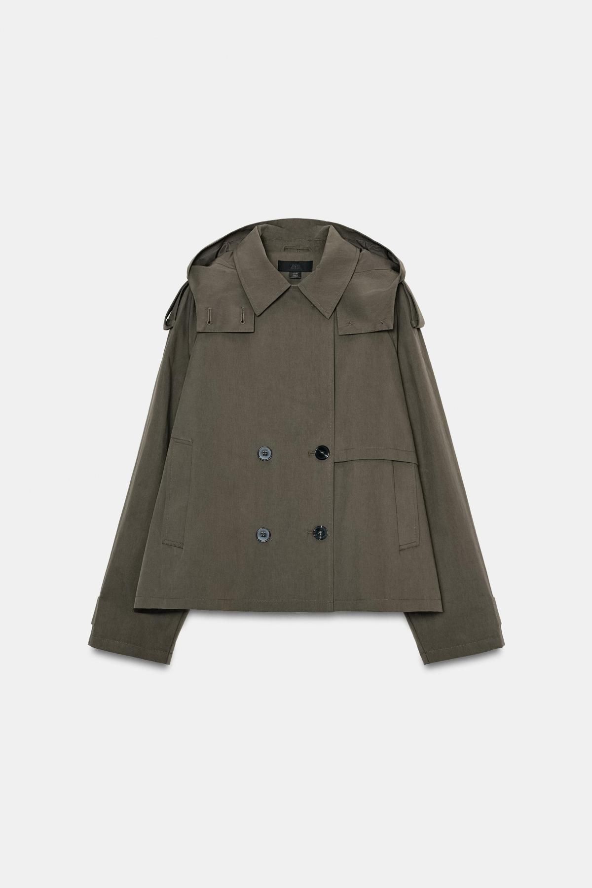 자라 테크니컬 후드 숏 트렌치코트 6318/050/962 DARK KHAKI