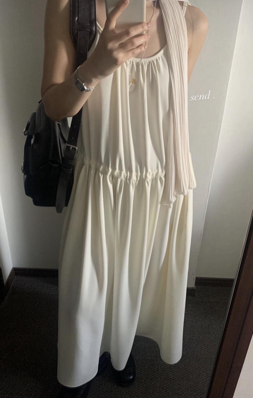 엠마 원피스 끈나시 레이어드 셔링 롱 드레스