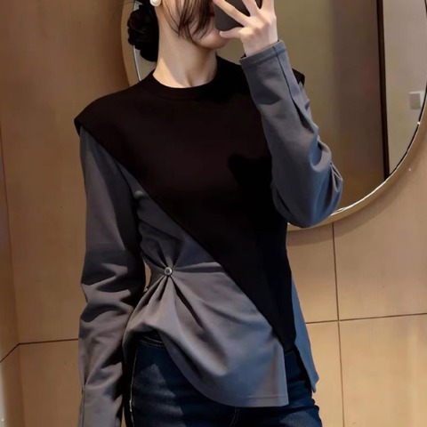 누아르사선 드레이핑포인트 슬림라인탑 노이르블라우스