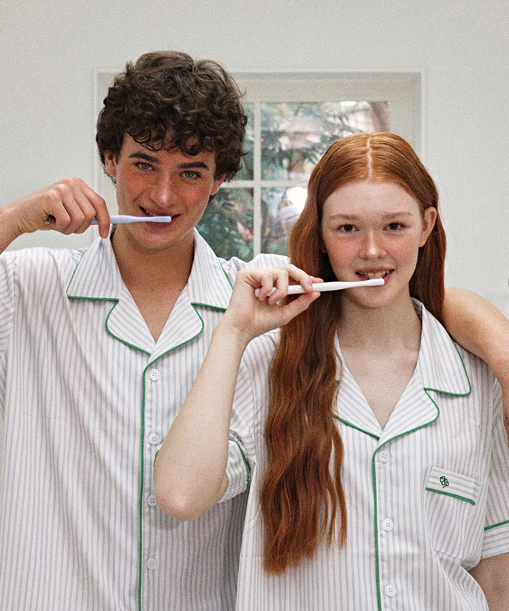 [2PACK] 더 클래식 반팔 파자마 세트 여성 남성 커플 홈웨어 2Color