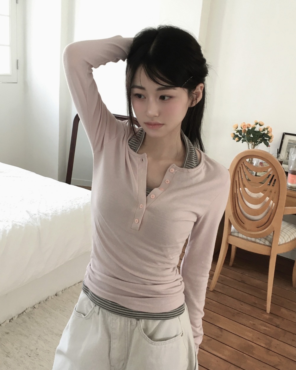 sooa button long sleeve t - 4color