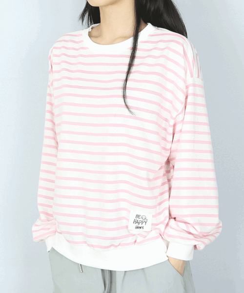 (묶음할인/무배) 4색 단가라 해피 라벨 오버핏 맨투맨
