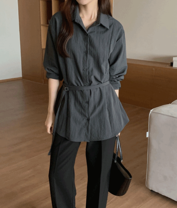 느엘 루즈핏 카라넥 벨트 셔츠 블라우스