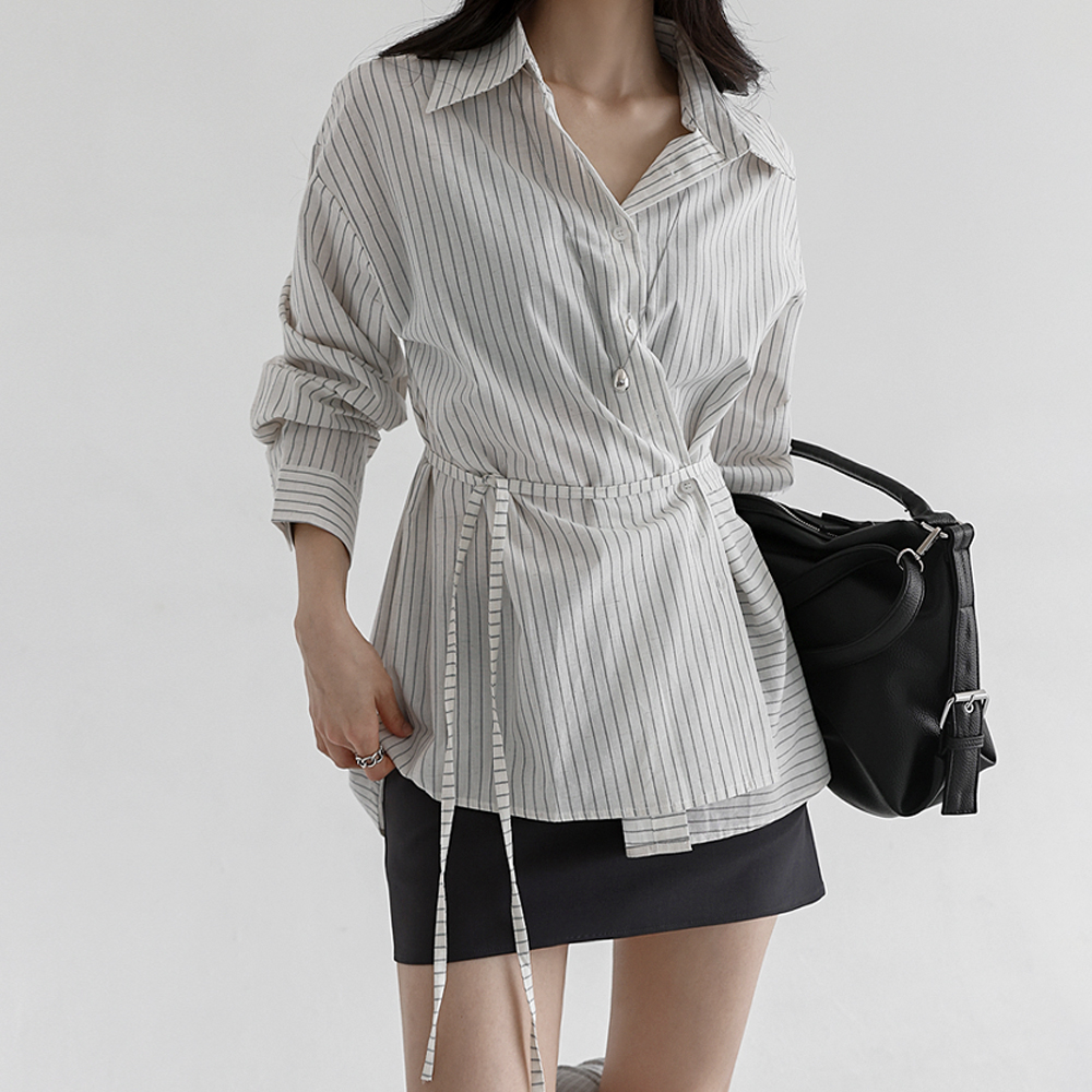 리아프 스트랩 세트 스트라이프 랩 셔츠 (봄/간절기/아우터/페미닌/클래식/데일리룩/오피스룩)