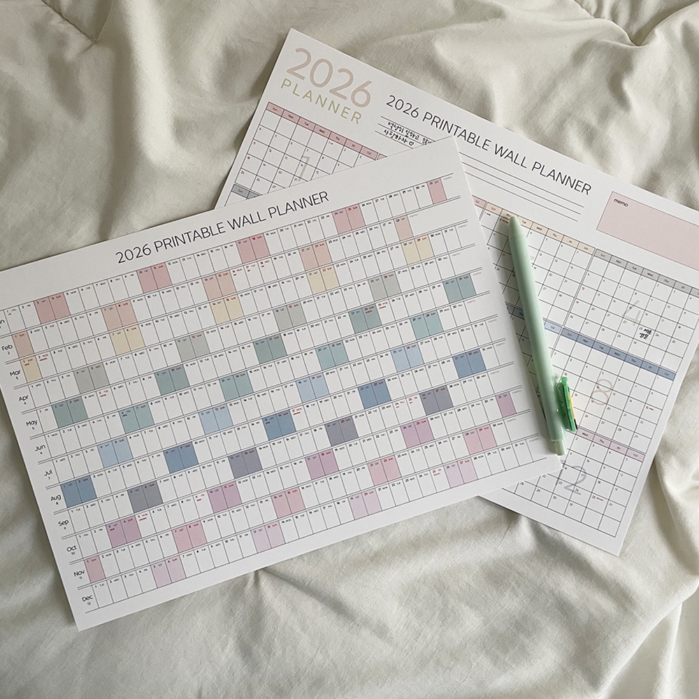 A4 2026 연력 1년 연간 한장 달력 [2type 26년 낱장 포스터 캘린더 2026년 스케쥴 계획표 26 일정표]
