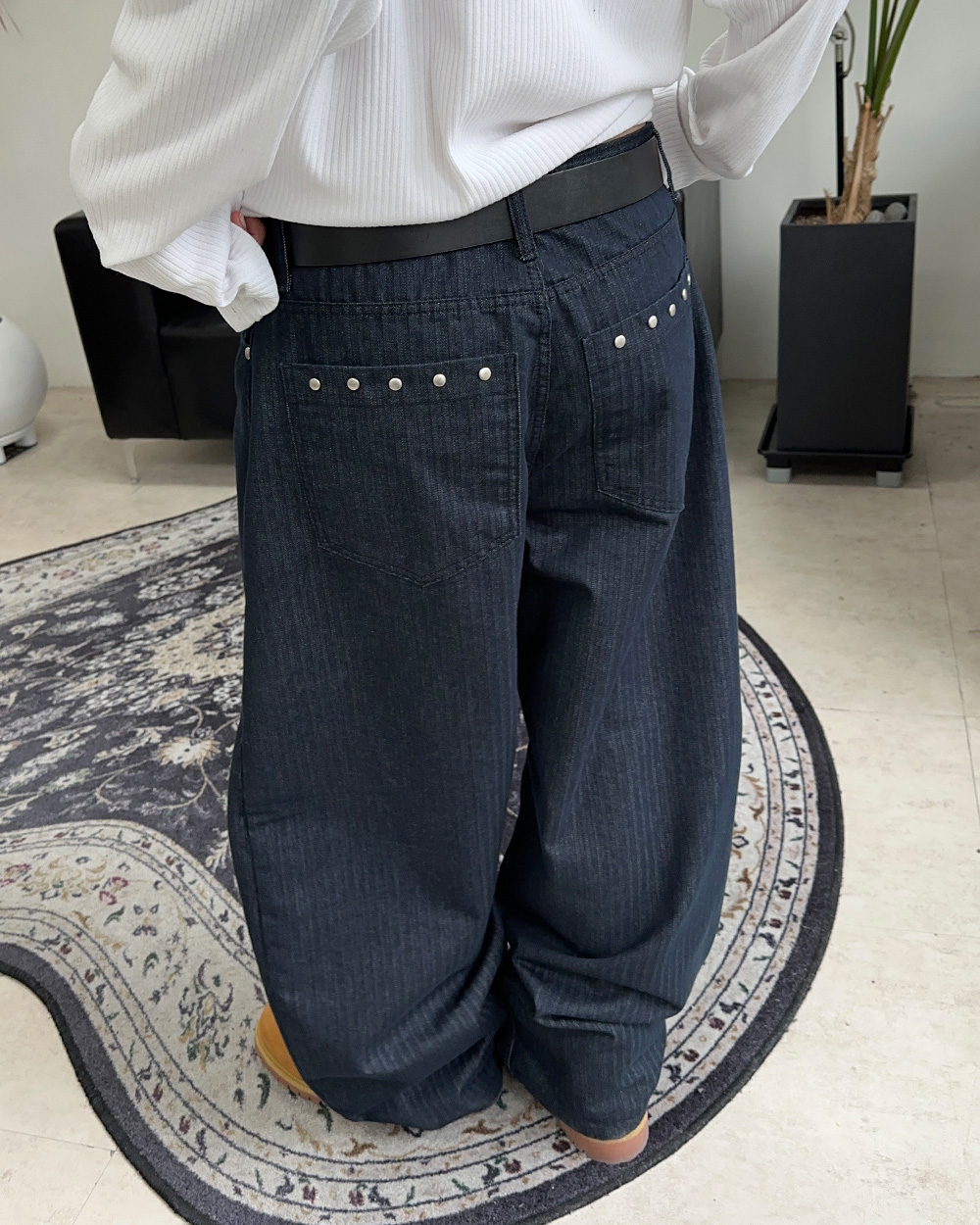 포린 스터드 헤링본 팬츠