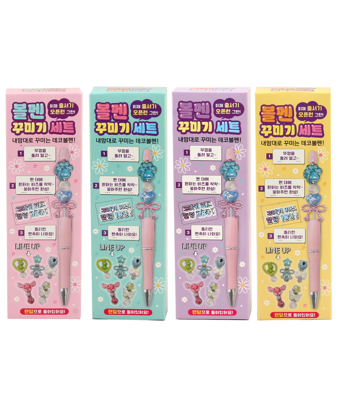 [4종] 랜덤 볼펜 꾸미기 세트/파츠 비즈 볼꾸 펜꾸 DIY 동대문 재료 키트
