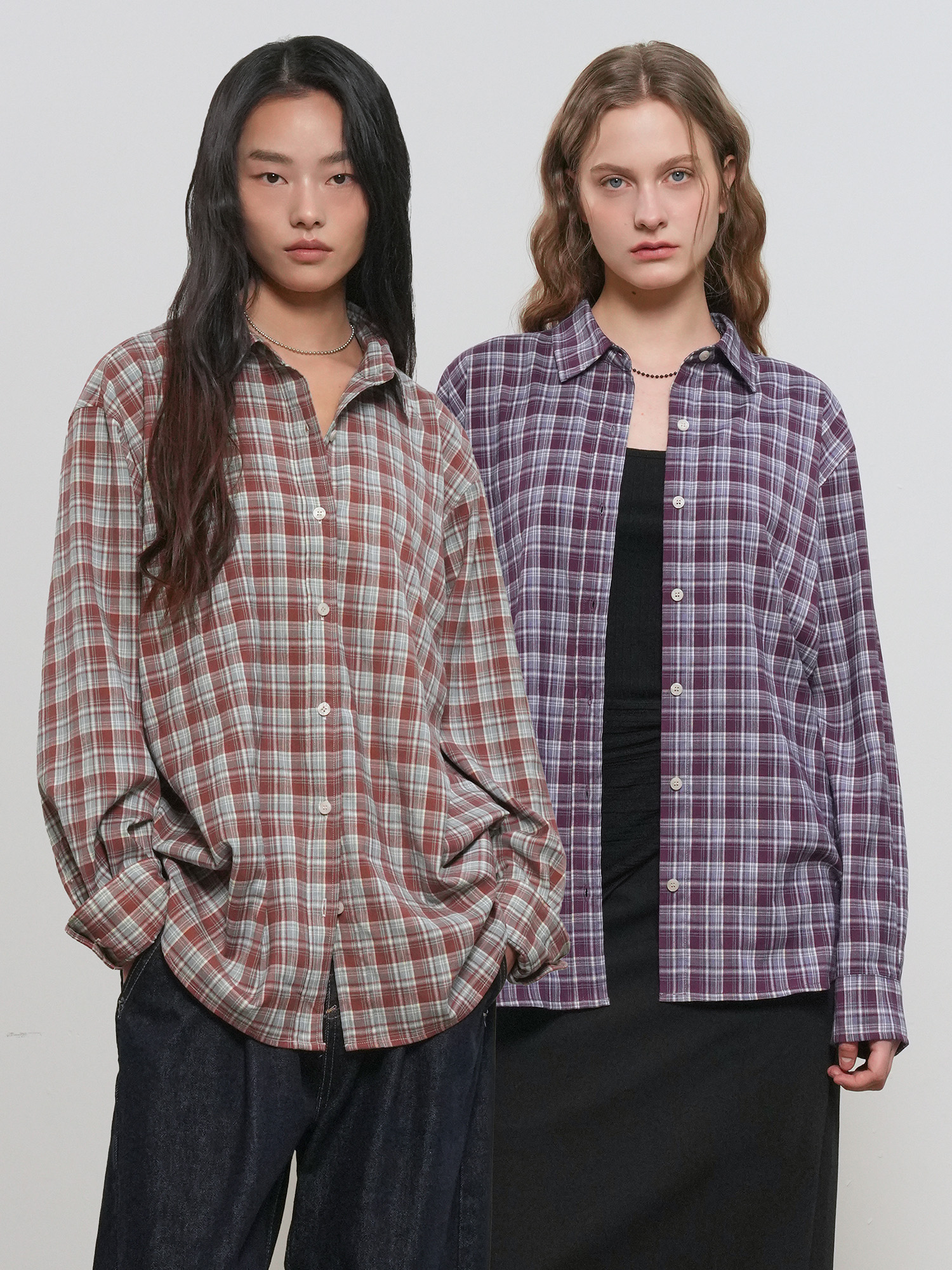 WOMAN 루즈핏 내추럴 체크 셔츠 [2COL] / GF1LSH511