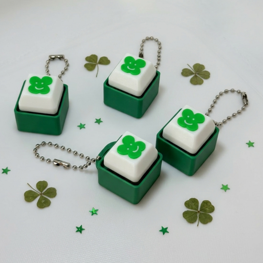 키캡 클리커 키링 행운의 스마일 네잎 클로버 클릭커 [1구 딸깍이 기계식 키보드 스트레스해소 누르는 손 장난감]