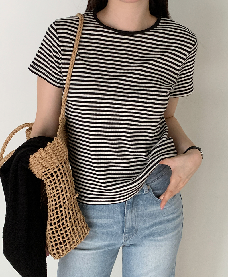 세룸 골지 스트라이프 반팔 티셔츠 5color (여름 이너티 슬림핏 기본핏 레이어드 단가라 출근룩 데일리룩)