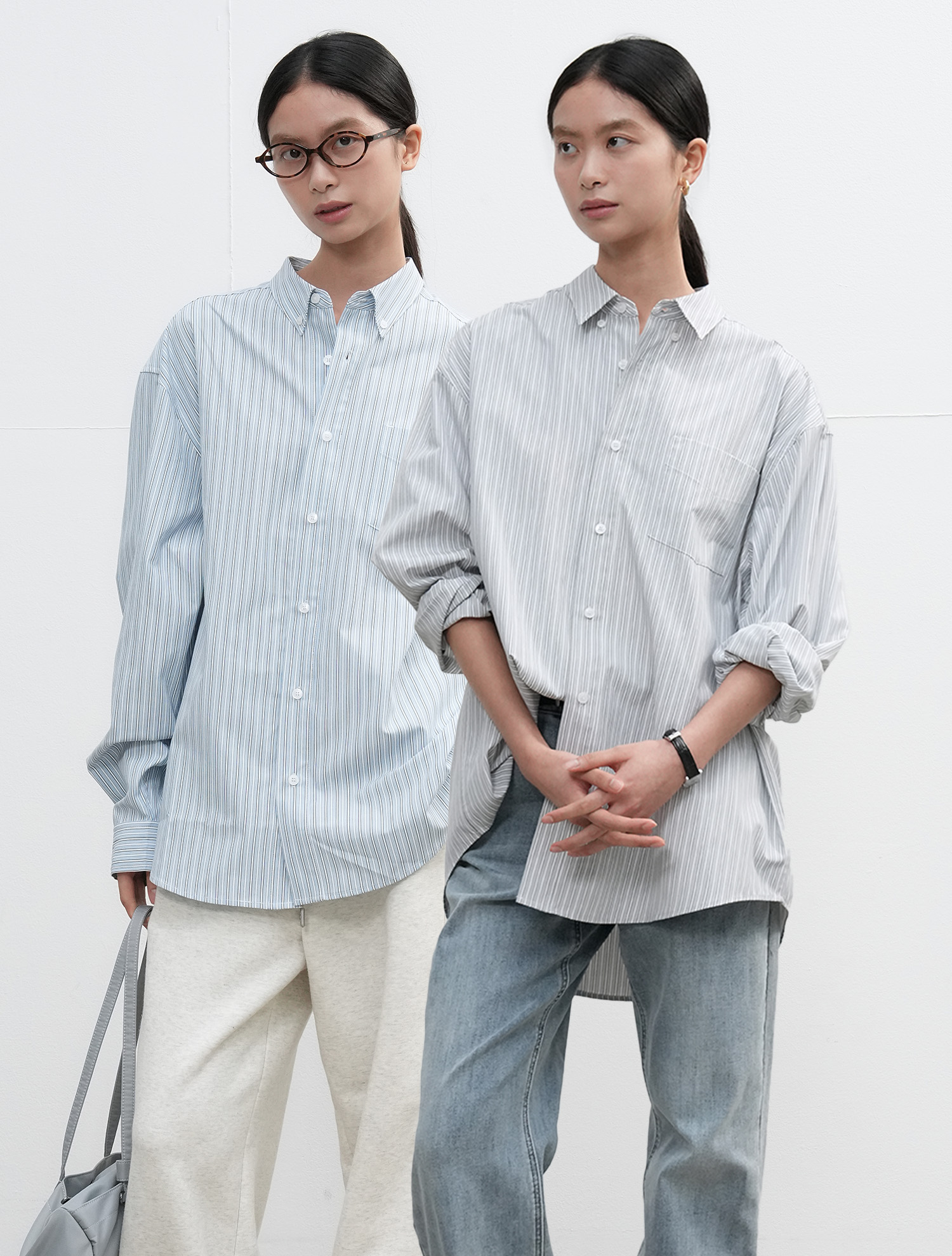 UNISEX 루즈핏 스트라이프 셔츠 [2COL] / SBE3U03003