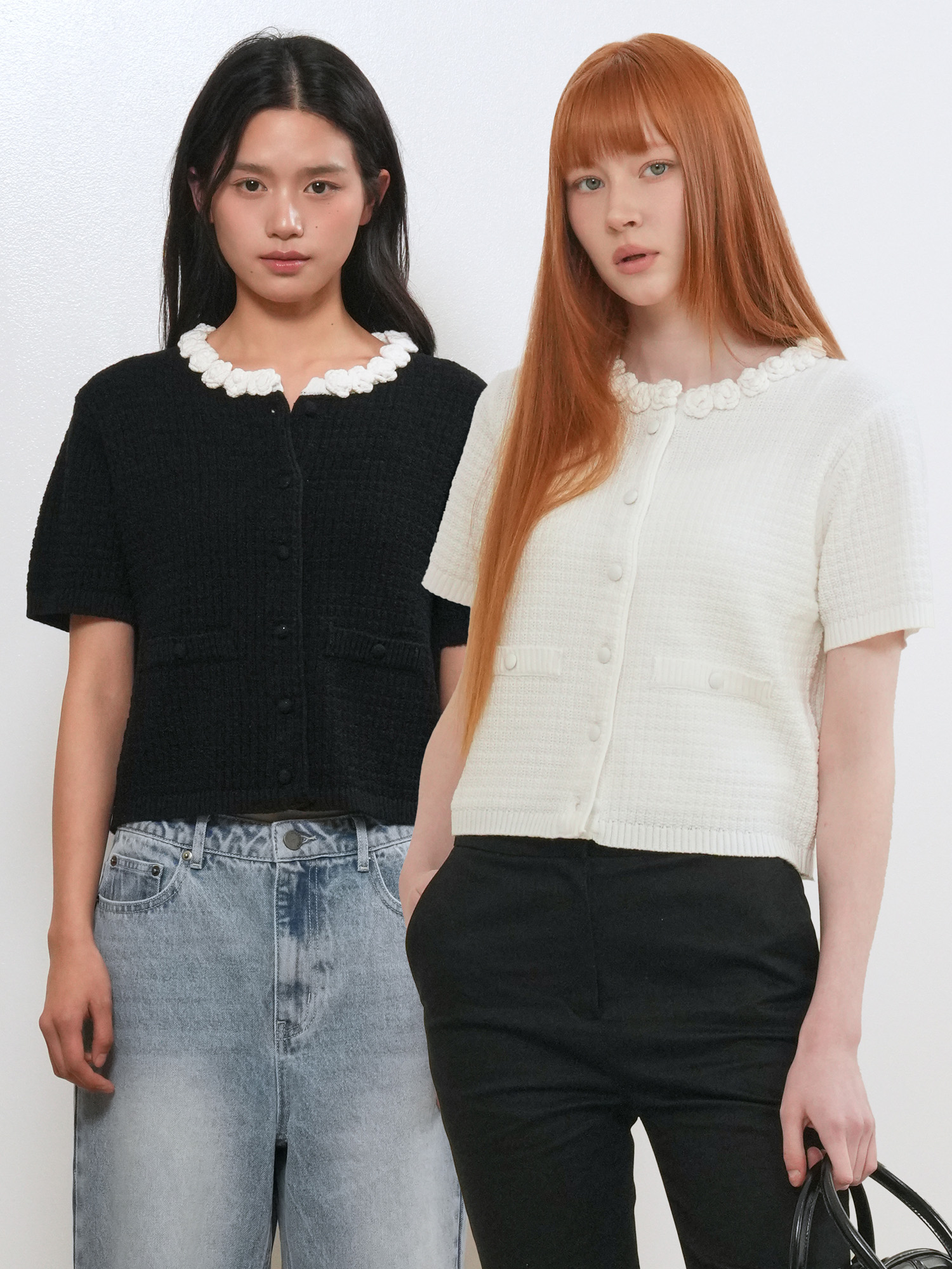 WOMAN 플라워 아플리케 코튼 가디건 [2COL] / GF2LKC532