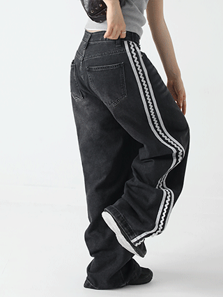 [와이드&조거/투웨이데님] 스트링 와이드 칠리배색 데님팬츠 (허리조절,4계절,와이드청바지,조거청바지,조거데님,흑청데님,와이드데님,와이드팬츠)