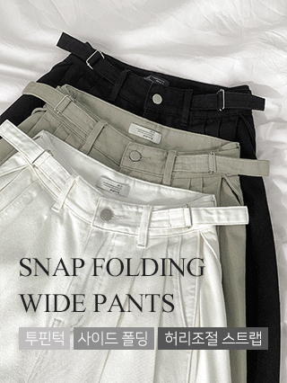 [허리스트랩+밑단버튼핏조절] 스냅 폴딩 절개 와이드 팬츠 (코튼팬츠,코튼와이드,스냅버튼,투스트랩, 핀턱코튼,면바지,키작녀)