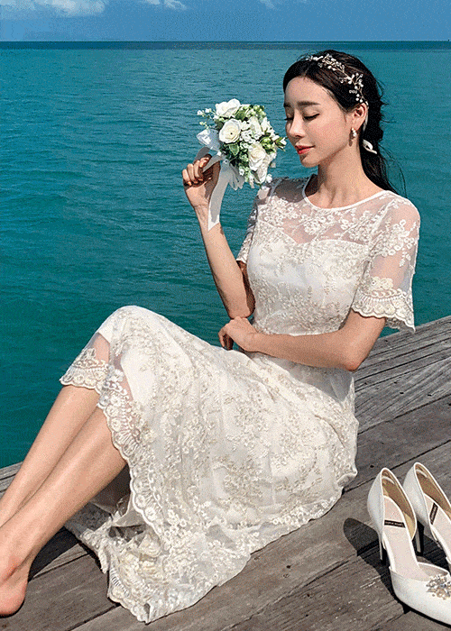 ♥당일배송/주문폭주♥[셀프웨딩]황금빛 인생 비치 원피스[셀프웨딩 원피스/브라이덜샤워/돌찬치/2부드레스] OP17078F