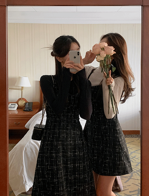 [미니기장추가][made] 롤랑드 트위드 뷔스티에 원피스 [2Types기본/롱(+30cm)] 데이트룩/하객룩/격식룩/가을원피스/신상원피스/롱원피스/나시원피스/패턴원피스/트위드원피스/연말룩