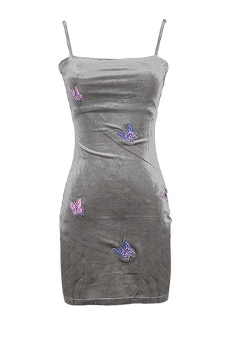 ♥아이돌&셀럽 협찬♥ 벨벳 자수 나비 스트랩 원피스