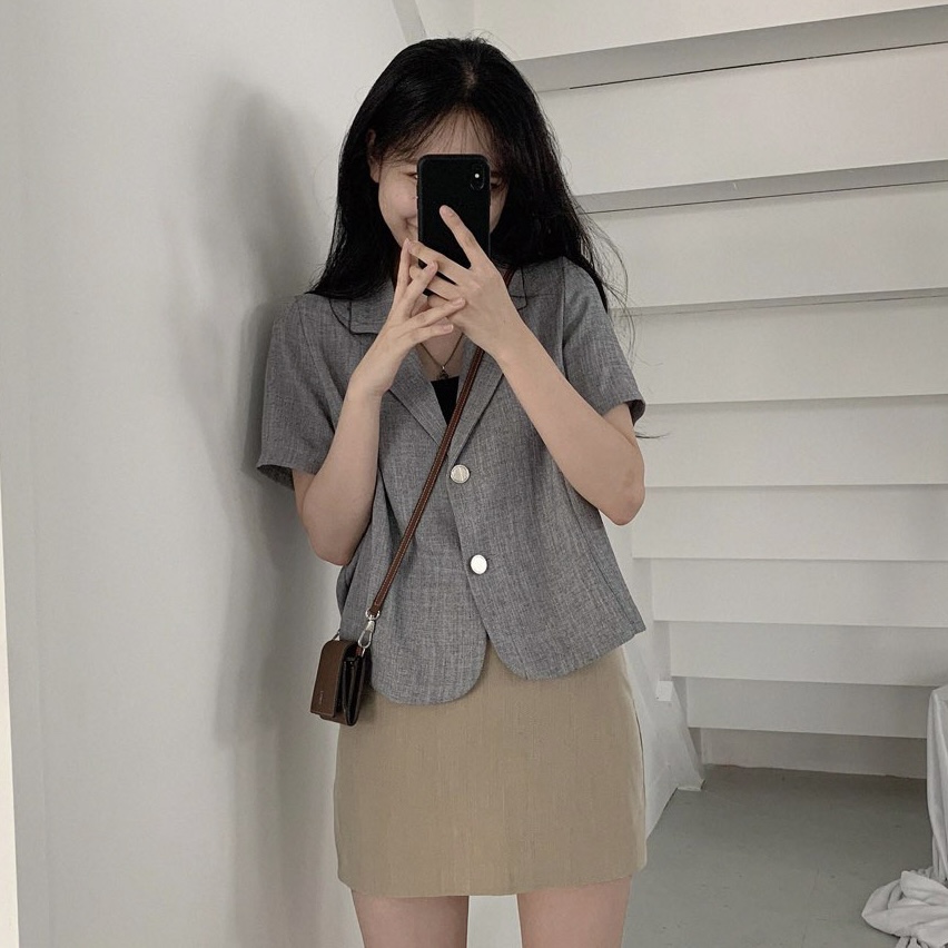 [모델소장] 실물파~ 진주 버튼 반팔 숏자켓