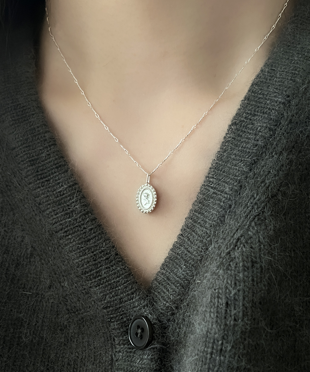 [무배] 실버925 타원 장미 펜던트 빈티지 목걸이 2colors