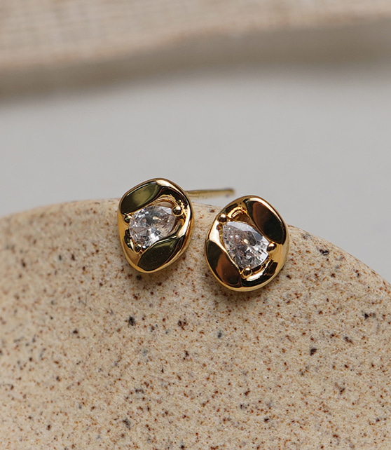 [925실버] 칸 물방울큐빅 체인모양 미니귀걸이