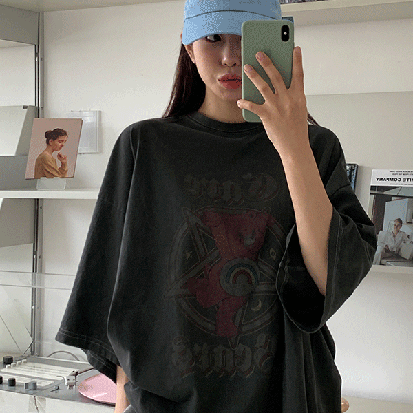 [무료배송]빈티지 베어 피그먼트 박시핏 반팔 티셔츠 - t(남녀공용,오버핏,빅사이즈,빈티지,66-77)