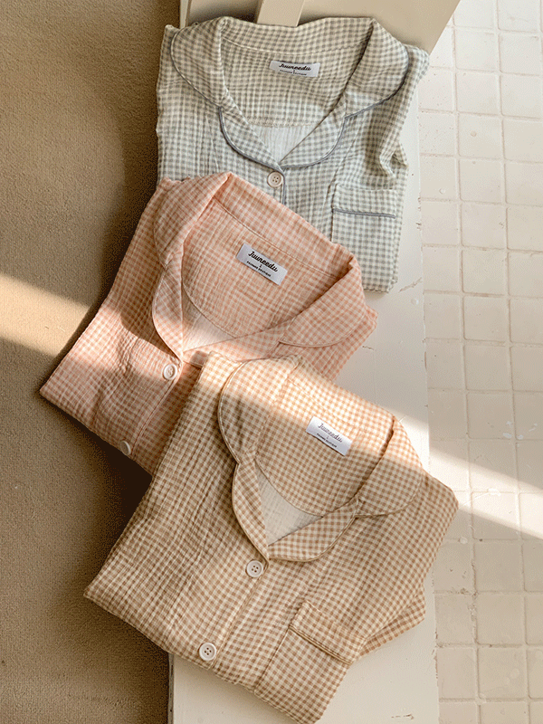 [1만장 돌파 /☁코튼] J'eu 데이지 체크 요루면 반팔 파자마 잠옷 세트 3color, 2size