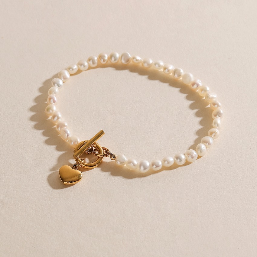 [당일] 써지컬스틸 담수진주 하트 토글 바 팔찌