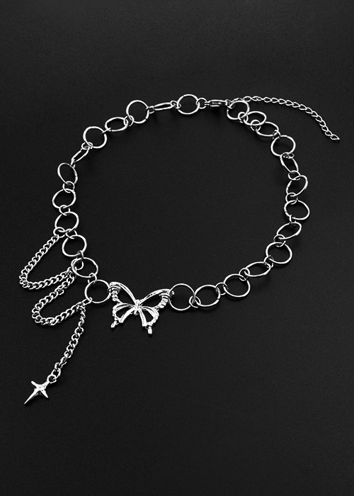 나비 펜던트 포인트 레이어드 서클 체인 쇄골 짧은 목걸이 N-0092