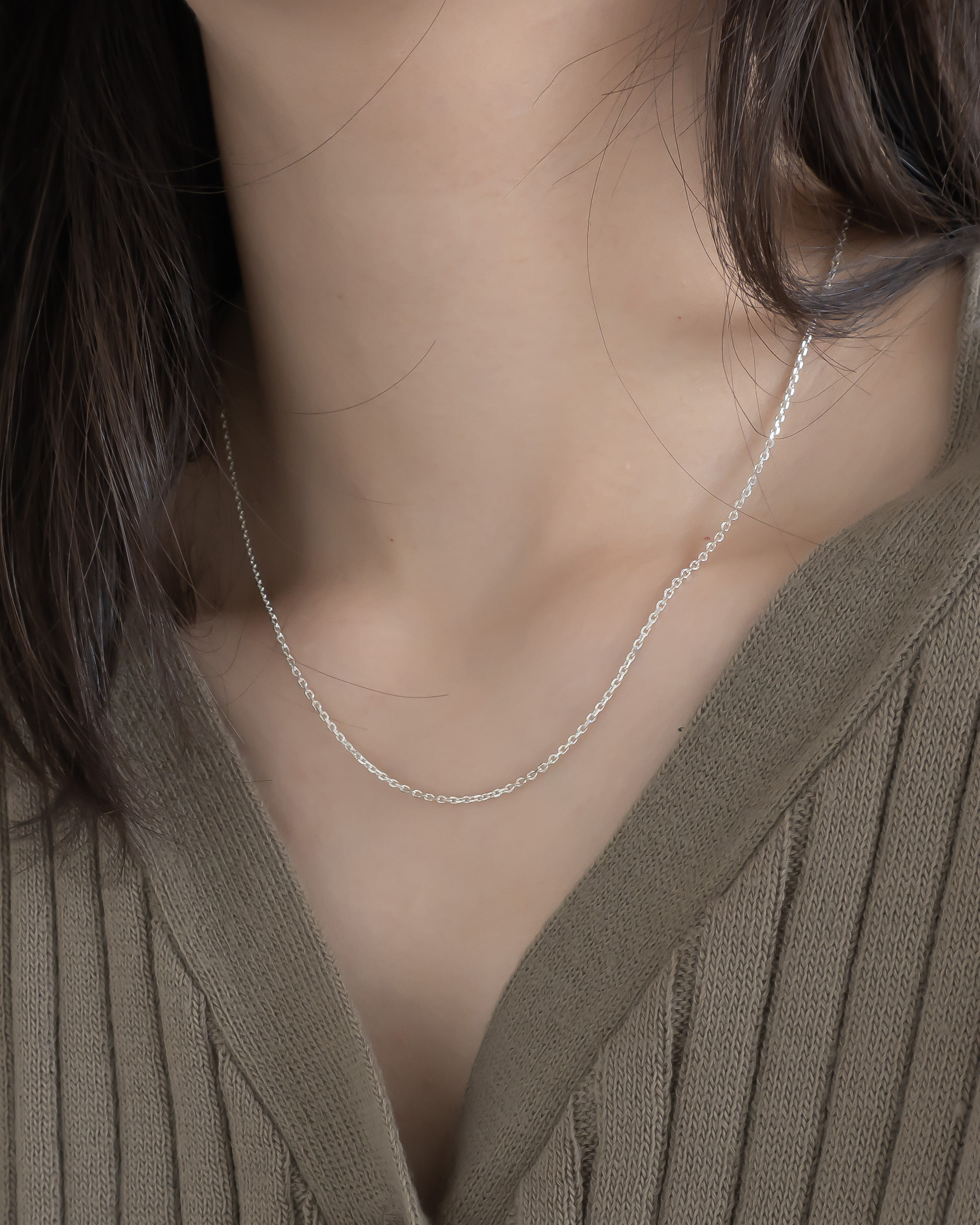 실버925 베이직 심플 각체인 롱 목걸이줄 25