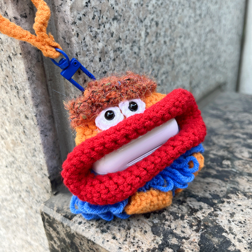 못난이 레드 인형 니트 뜨개 에어팟케이스