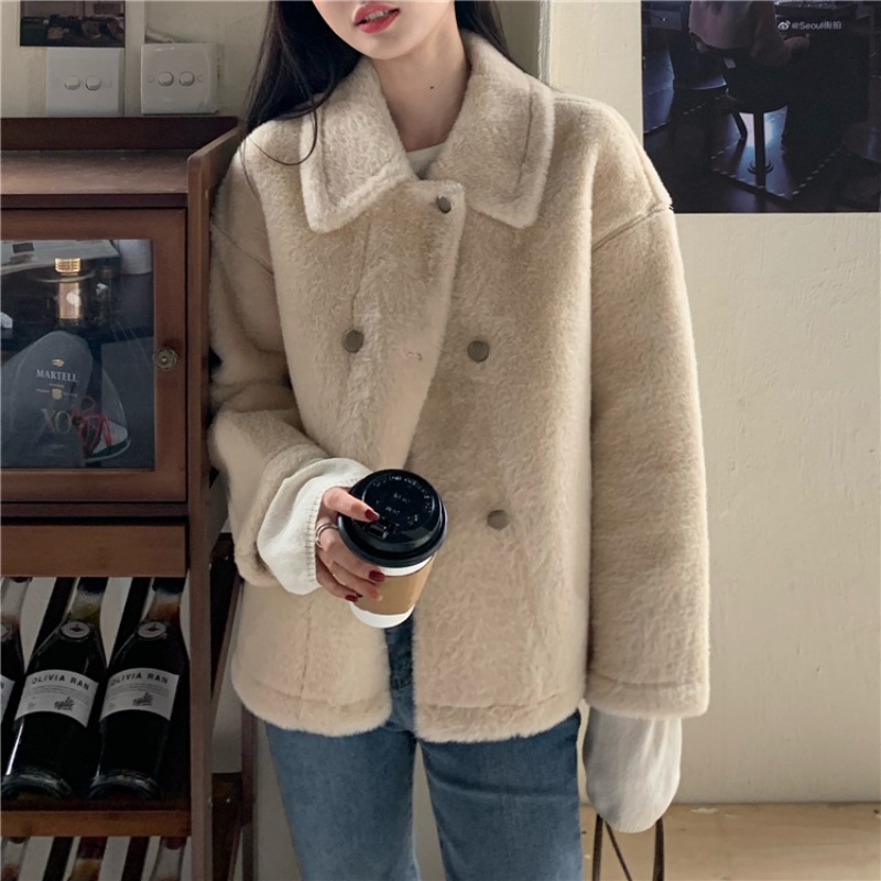 (인기상품/아이보리 ) 더블 브레스트 블레이저 자켓 플리스 자켓 양모 벨벳 겨울 해외