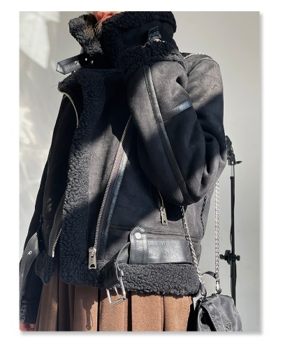 [주문폭주!!] 스웨이드 숏 여자무스탕 덤블 배색 가죽 버클 하이넥 겨울 점퍼(2color)