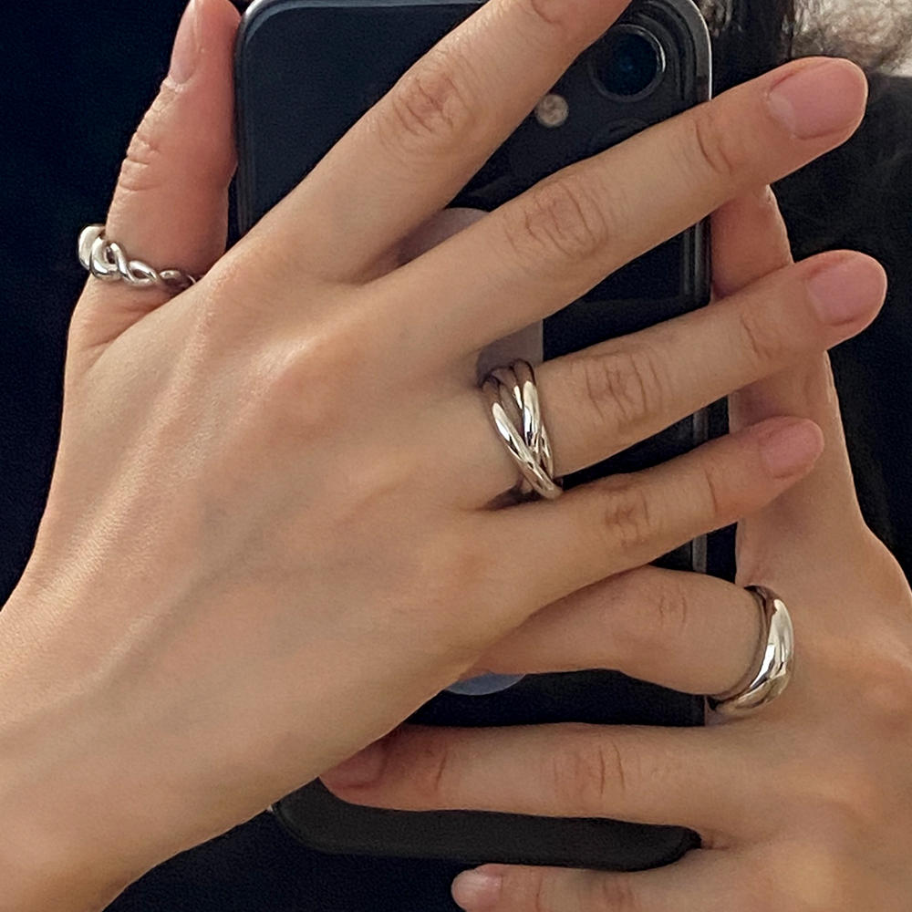 [변색X]고퀄 3링 레이어드 볼드 포인트 실버 반지