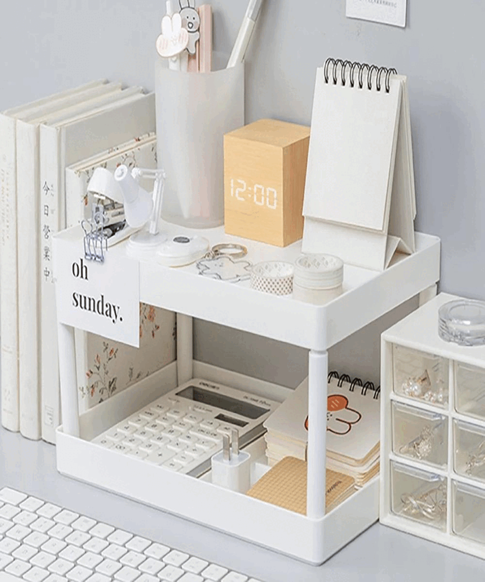 2단 화이트 반투명 책상 화장대 테이블 선반 다용도 정리함 수납 정리 집 방 꾸미기 홈데코 깔끔 심플