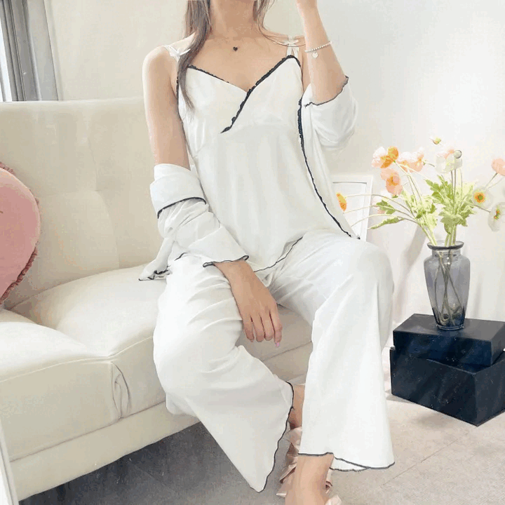 캡내장 3피스 브라캡 내장 끈나시 민소매 잠옷 세트 여자 우정 파자마