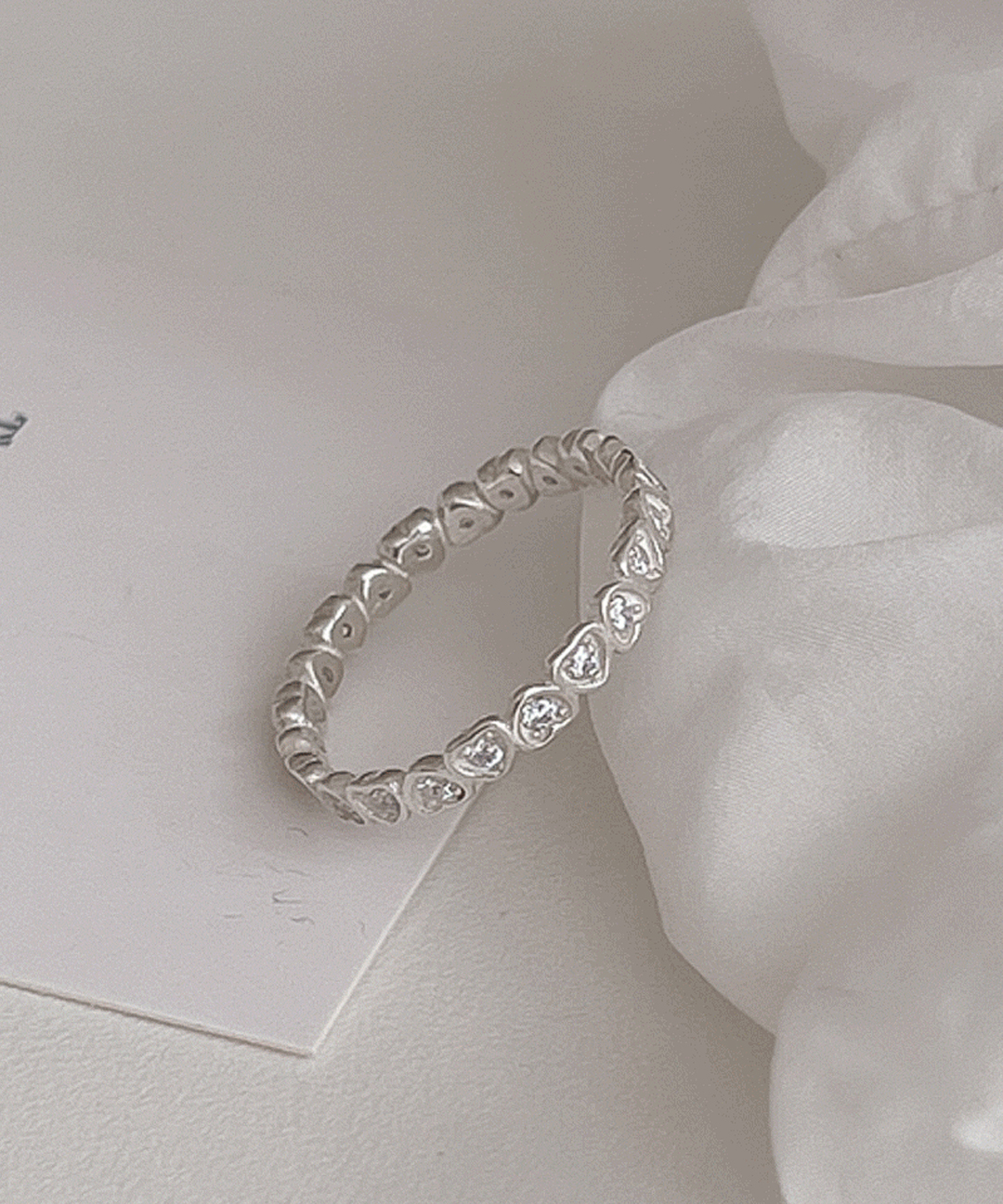[Silver925] 크리스탈 하트 큐빅 925 실버 반지 (3colors)