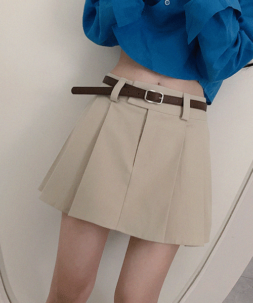 (✨로우라이즈) 바스락면 미니 치마바지 플리츠 플레어 로우웨스트 골반 스커트 베이지
