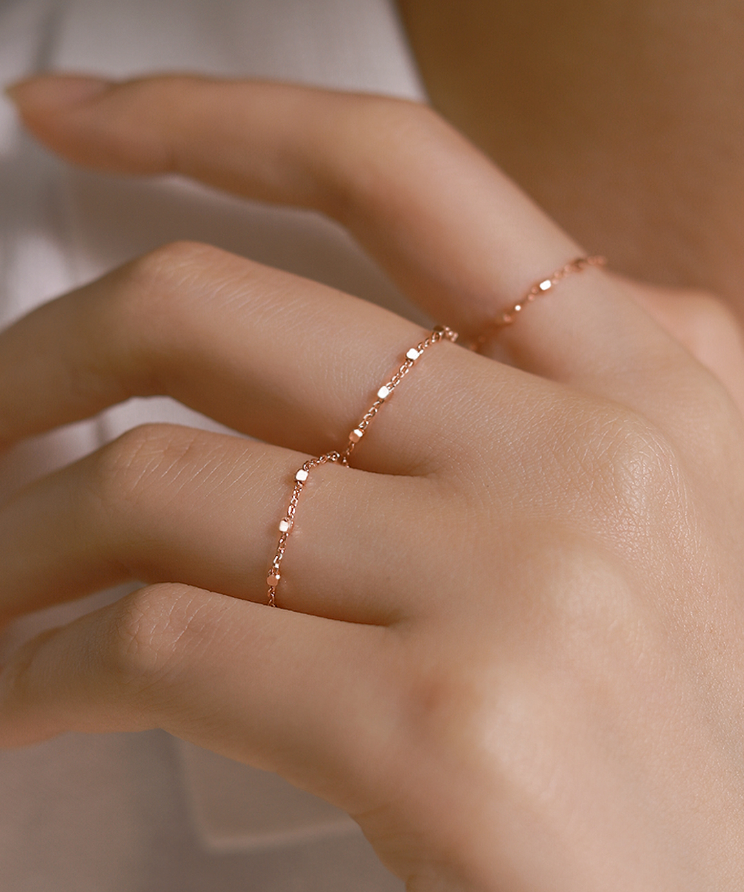 실버925 데일리 사각 컷팅 볼 레이어드 링 실 체인 은 반지