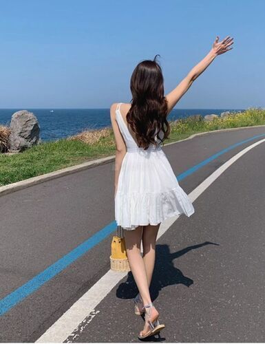 🚀화이트오늘출발 [2color] 스완 양 브이 나시 플리츠 플레어 미니 원피스 휴양지