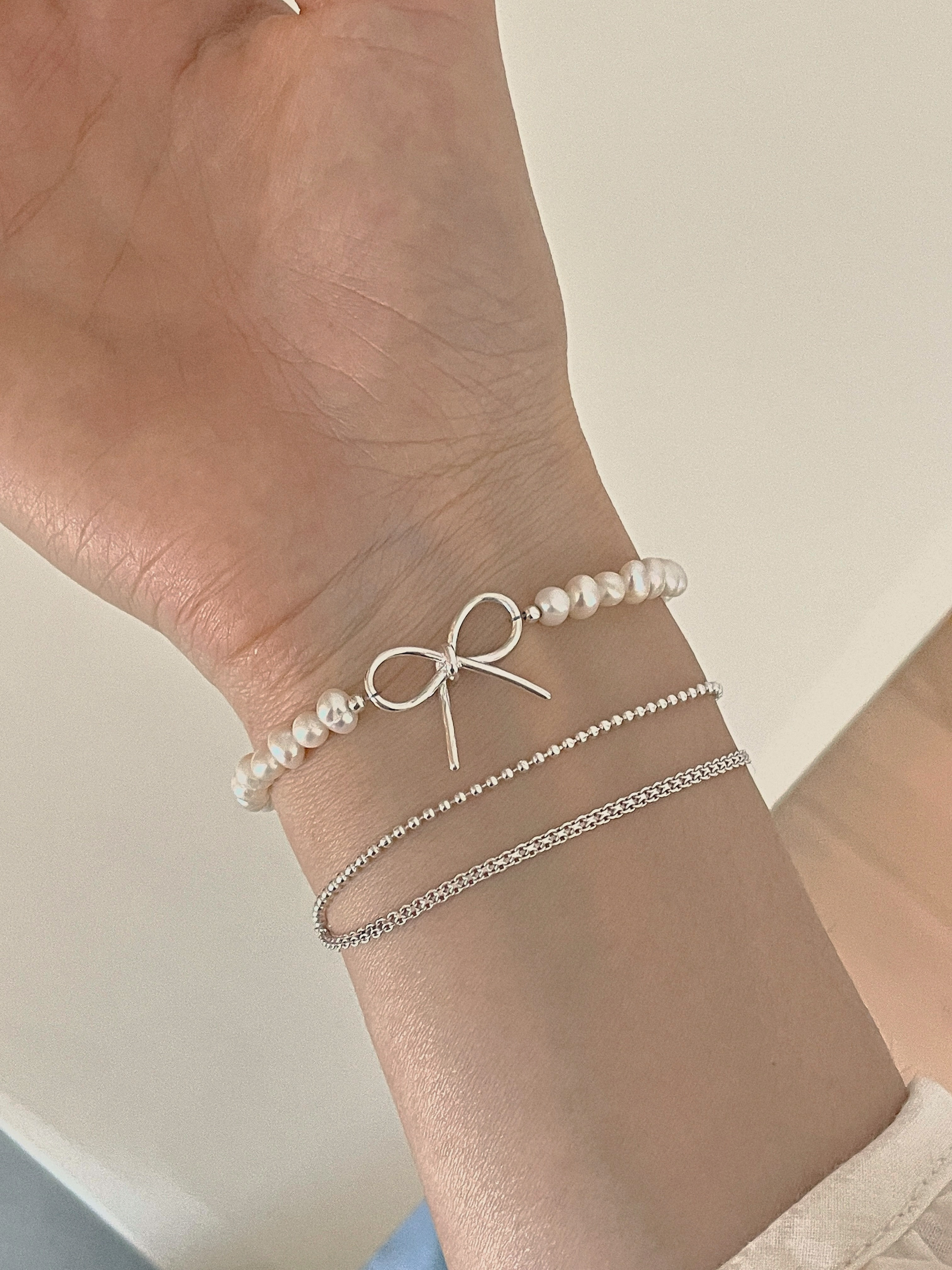[92.5 Silver] Freshwater pearl ribbon bracelet