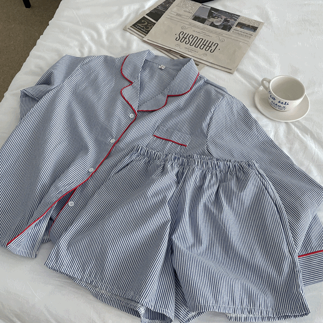 [홈웨어]페미닌 스트라이프 파자마set(긴팔+반바지)