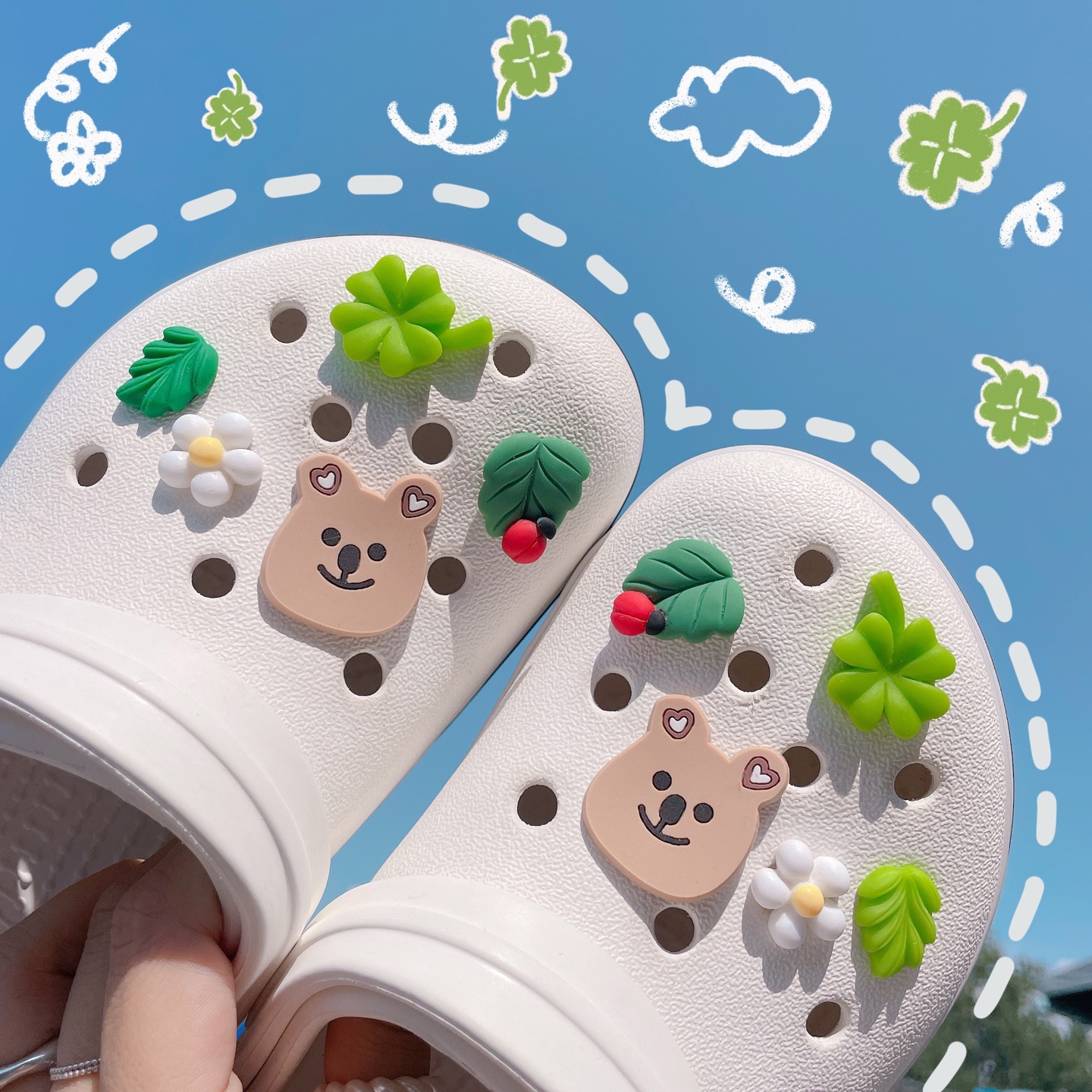 🍀행운의 만곰이 네잎클로버 파츠 꾸미츠 세트