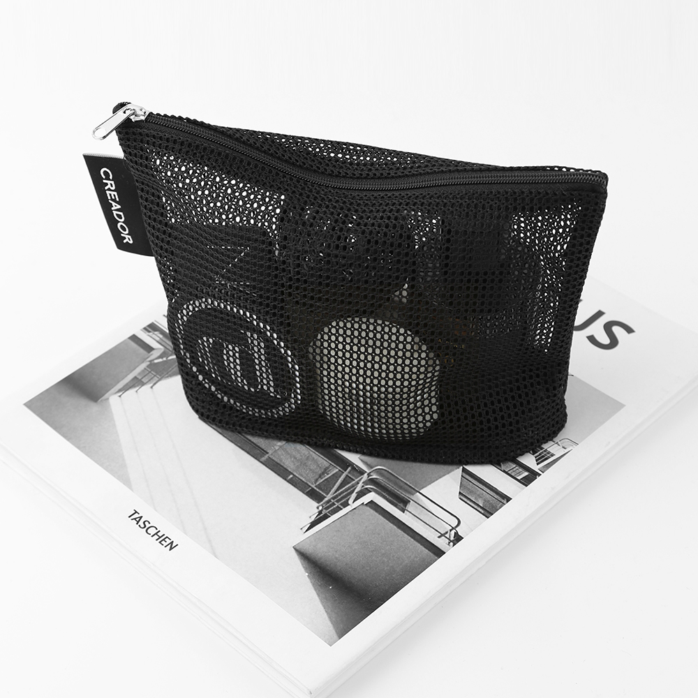 블랙 메쉬 스탠드 화장품 빅 지퍼 파우치