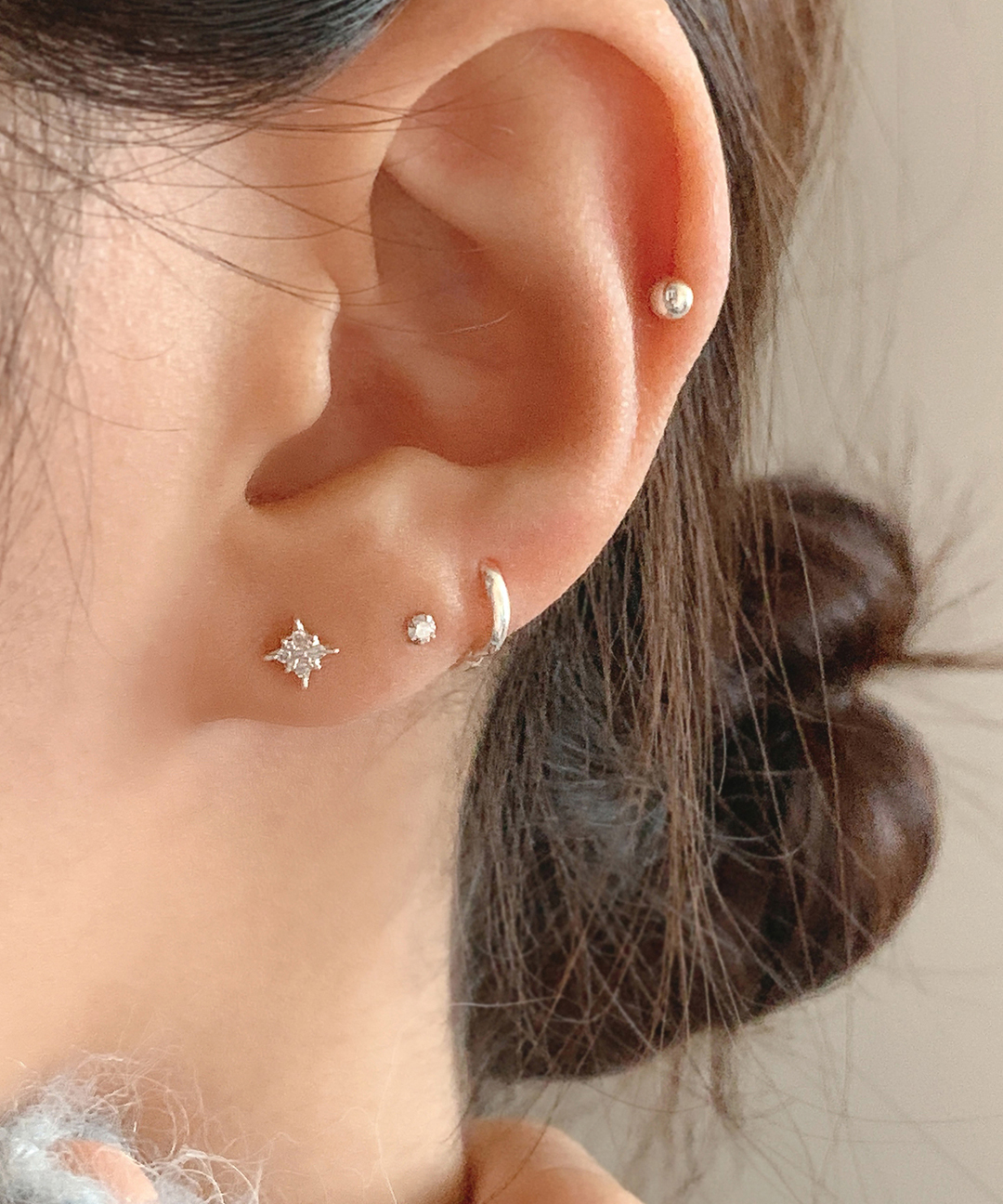 실버 스파클링 원터치 링 귀걸이 피어싱 세트