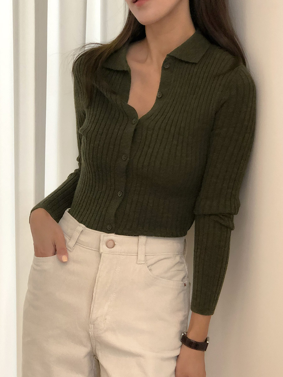 캐릴 슬림 골지 카라 니트 가디건 5color