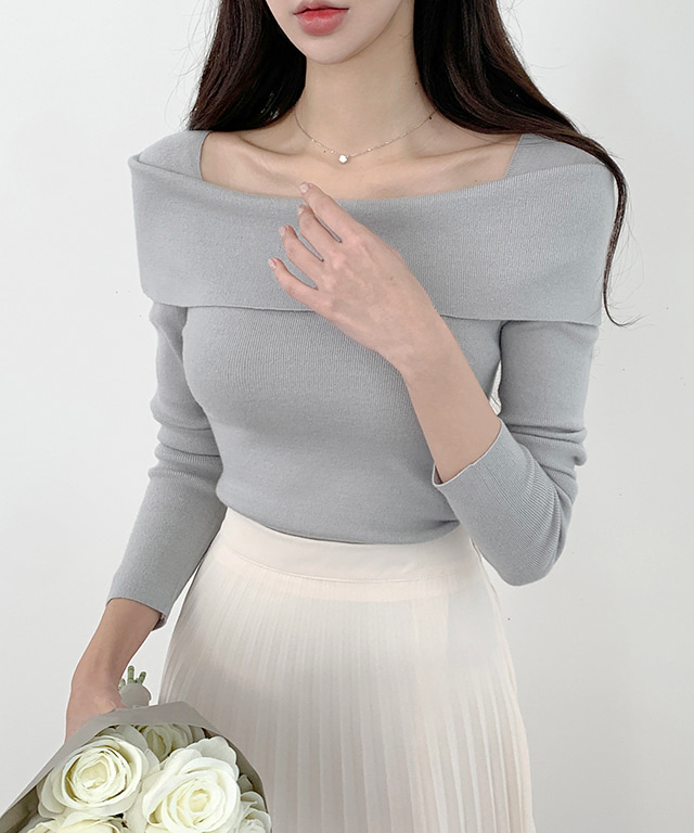 [동일디자인 고퀄상품] 나비스 오프숄더 보트넥 슬림 쫀쫀 니트