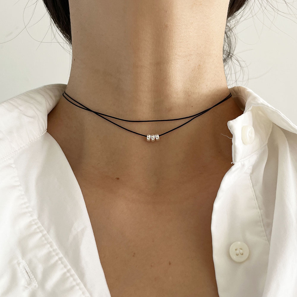 실버 실크 두줄 3 미니 도넛 볼 초커 목걸이