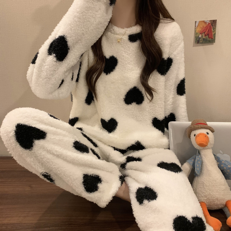2컬러 하트 극세사 부들이 수면 잠옷 투피스 공주 겨울 우정 커플 파자마 파티 수면바지