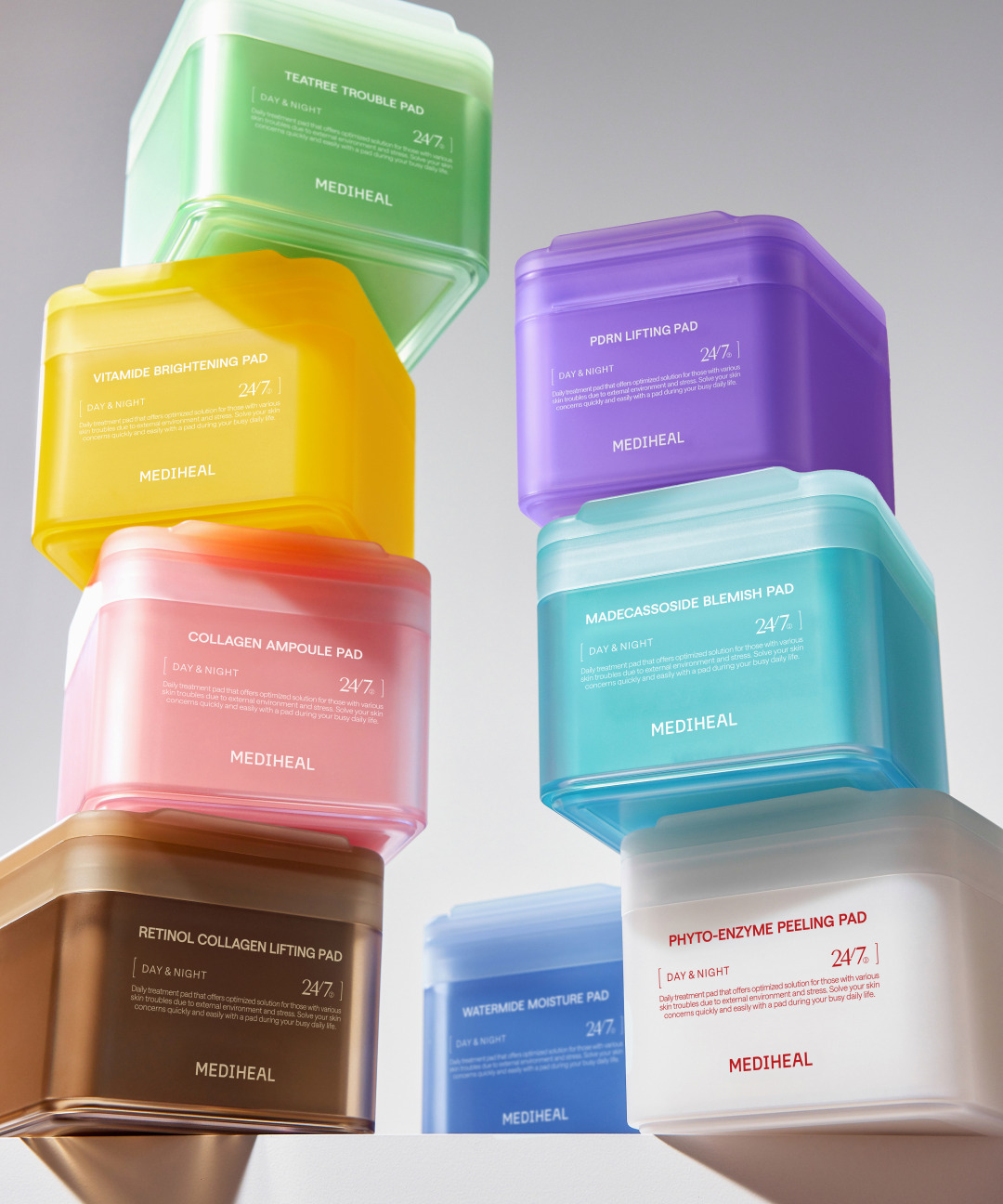 용량(중량)티트리: 100매/170ml, 마데카소사이드: 100매/170ml, 피디알엔: 100매/170ml,콜라겐: 100매/170ml,워터마이드: 100매/150ml,비타마이드: 100매/180ml,피토엔자임: 90매/200ml,레티놀: 100매/180ml